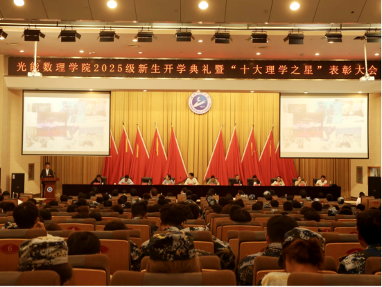 本网讯(通讯员 潘子萌 王宁亚)9月30日中午,光电信息与能源工程学院(数理学院)2025级新生开学典礼在流芳校区四教多功能报告厅隆重举行,学院院长陈相柏及领导班子成员,,2017届能源与动力工程专业优秀校友钟凡,学院相关教师、新生班主任和全体辅导员出席典礼,2025级全体新生参加典礼。