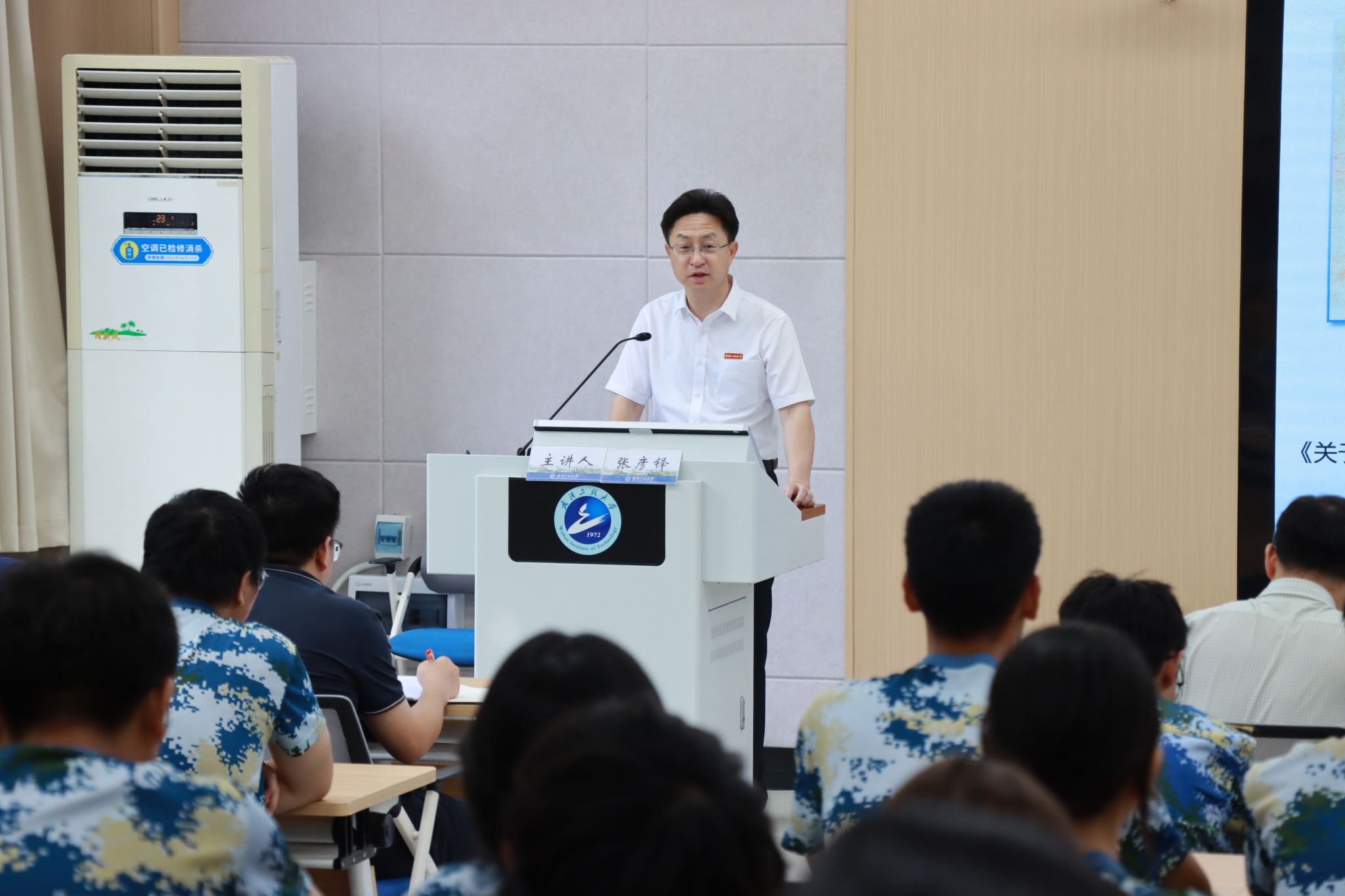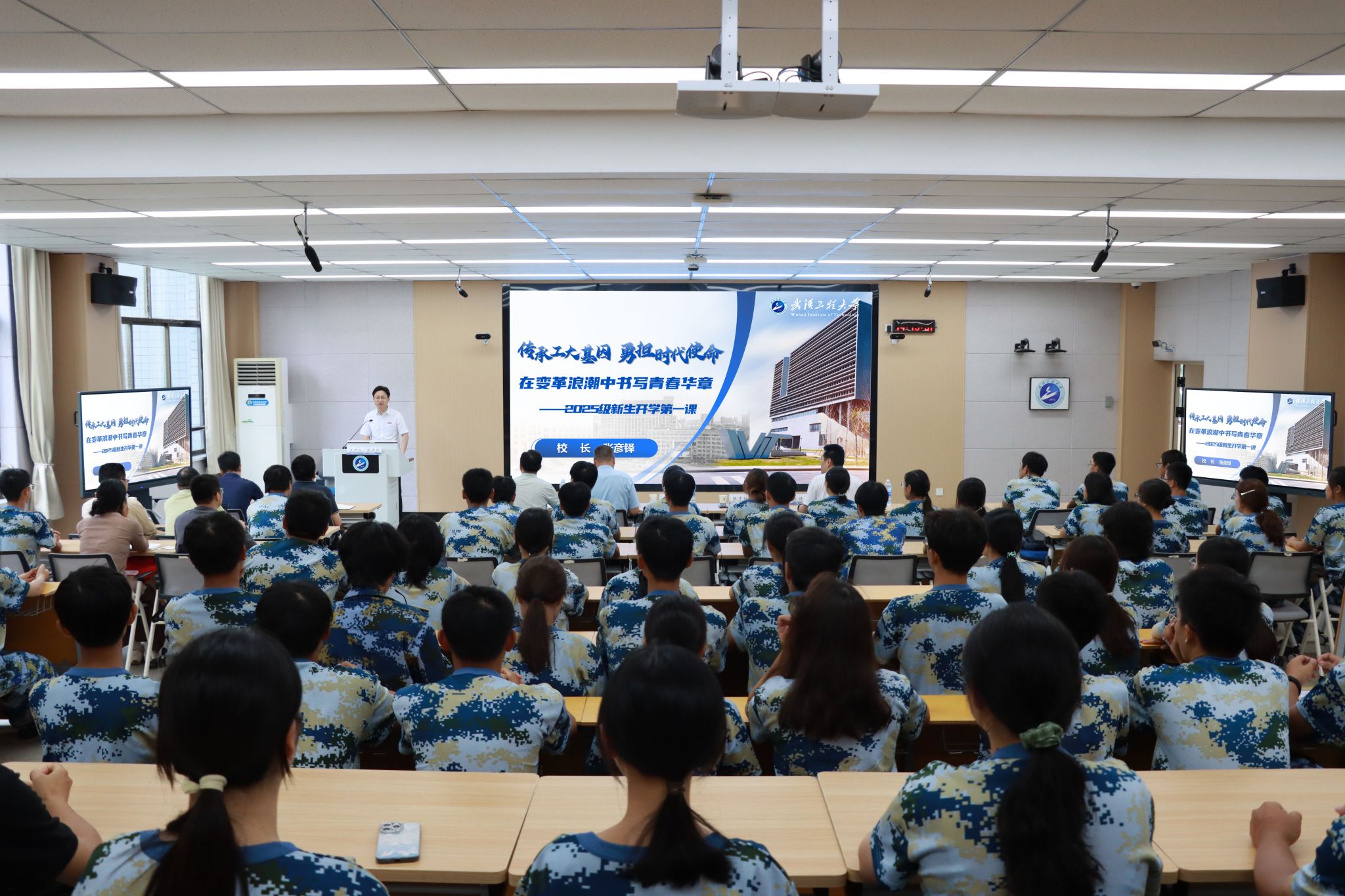 张彦铎从学校历史沿革和担当使命两个方面为大家展开讲授。一是以工报国五十载,砥砺奋进谱华章。他带领同学们回顾了学校与时代同频、与国同行的53年奋斗历史,讲述了学校从无到有、由弱到强、由单科向多科、由教学型向教学研究型跨越的奋进之路,并为同学们讲解了学校在学科建设、人才培养、师资队伍、科学研究、校友文化等方面取得的成绩。他指出“‘格物明理、致知笃行’的校训是学校人才培养、科学研究、社会服务的‘精神坐标’,‘艰苦奋斗、自强不息’的工大精神,是学校在栉风沐雨的发展中自然沉淀的‘文化基因’,是学校克服困难、突破瓶颈的“精神动力”。二是锚定“现代化工大产业”,做堪当大任的破浪者。“作为新时代的工大人,我们应当如何认清使命、找准方向、担当重任?”张彦铎以问题引导新生思考个人发展航向。他结合时代坐标、学校发展布局、成长目标等内容,带领同学们探寻学校发展与个人成长的关系。为大家解读了学校建成“面向现代化工大产业区域一流行业特色高校”的定位和发展布局,勉励同学们要以“‘五育五成’,铸就全面发展的青春底色;以‘五实五创’,搭建知行合一的成长阶梯”,成长为担当有为的新青年。他希望同学们始终相信信念的力量、坚守的力量、奋斗的力量,在武汉工程大学这片沃土上,传承工大基因,勇担时代使命,在实现人生价值的同时投身中华民族伟大复兴的壮丽事业。