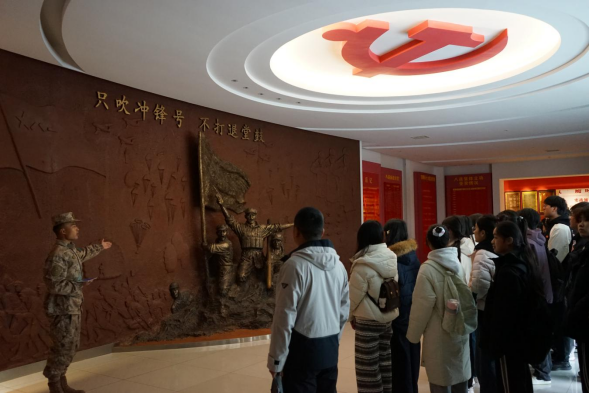 本网讯(通讯员 刘敏)为弘扬爱国主义精神,传承红色基因,进一步增强师生国防意识,厚植青年学子家国情怀,强化报国使命担当,12月4日下午,学校组织师生赴上甘岭特功八连荣誉室开展国防教育参观学习活动。退役大学生代表、国旗护卫队成员、各学院意向参军学生共140余人参加活动。